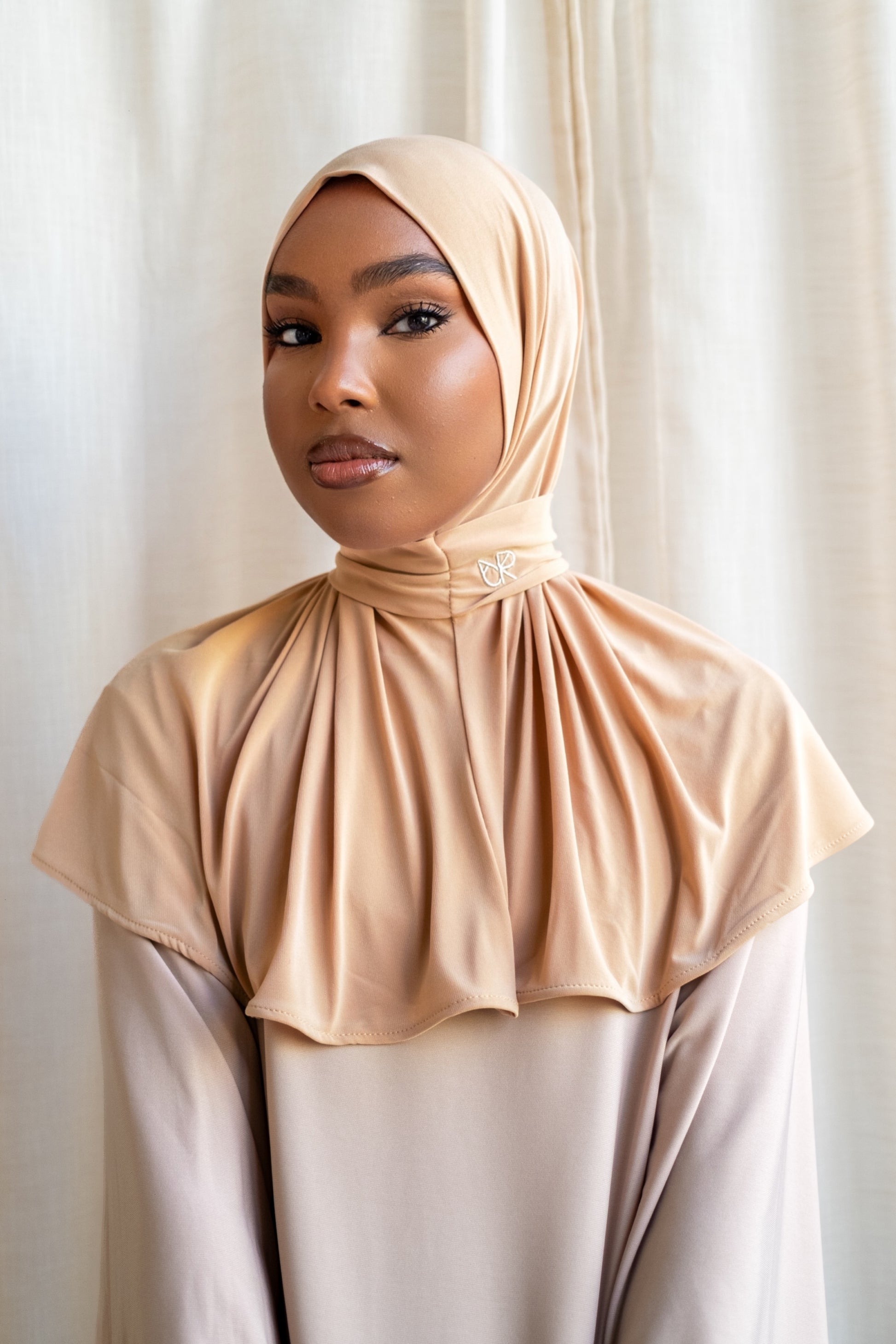 Discover the allure of our Ruya scarf, crafted from a premium, jersey fabric that's delightfully smooth and luxuriously gentle. Designed for comfort, it offers breathable coverage with just the right amount of stretch for a perfect fit. This scarf is enhanced with a subtle, radiant glow, adding a dash of elegance to your ensemble. It also features three sleek buttons for stylish, secure fastening. Elevate your wardrobe with the Ruya scarf, where sophistication meets practicality.